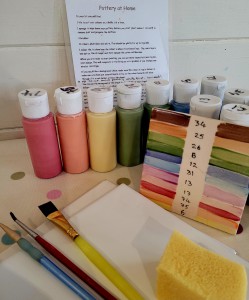 Pottery painting kits to take home are available